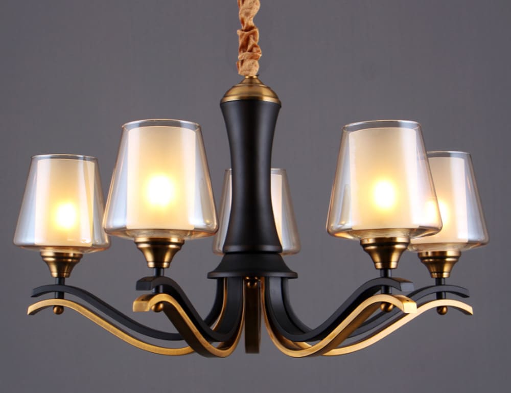 نجفة كريتال، 5 ذراع، زجاج دبل اسود + نحاسى