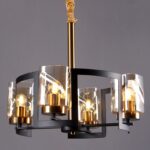 نجفة كريتال رباعية أسود + ذهبي زجاج عسلي